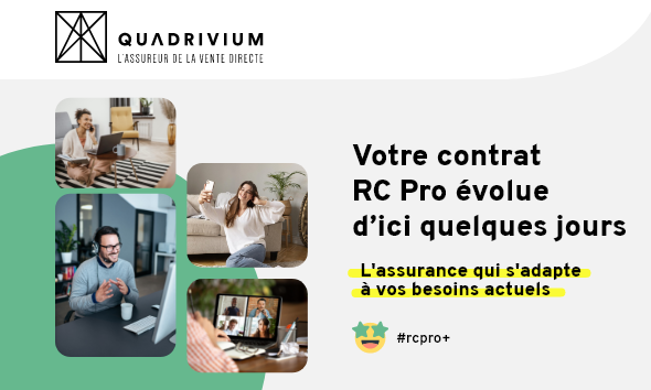 Du changement en vue ! Votre assurance professionnelle RC Pro, souscrite par l’intermédiaire de notre partenaire Quadrivium, évolue prochainement et devient RC Pro +.